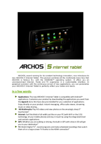 Disponibilizamos 1 manuais Archos 501317 em pdf para descarga gratuita: Especificações